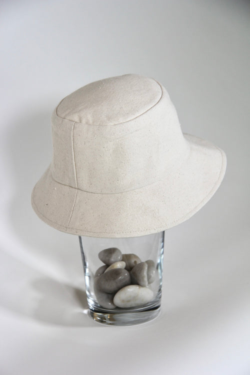 This bucket hat is constructed in an off-white upcycled denim material made with 100% sustainable eco-cotton.