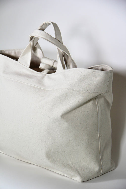 This tote bag is crafted from 100% sustainable eco-cotton, in an off-white upcycled denim material. Perfect for everyday use, to hold all of your essentials.
