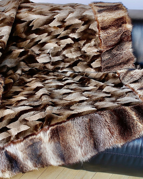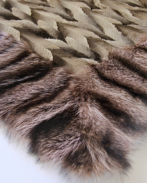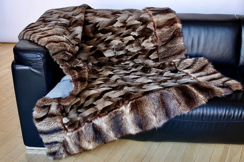 One of a kind blanket from recycled sheared beaver fur with recycled racoon fur trim.