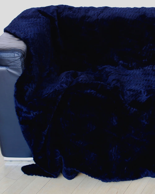 One of a kind blanket from recycled sheared beaver fur. Soft and plush, perfect for adding layers of warmth over a bed or a sofa.