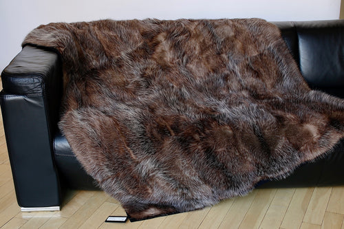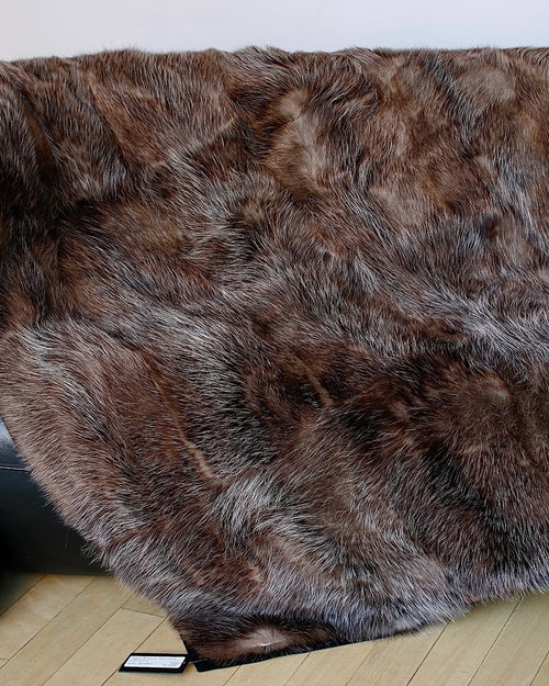 One of a kind blanket from recycled American opossum fur. Soft and plush, perfect for adding layers of warmth over a bed or a sofa.