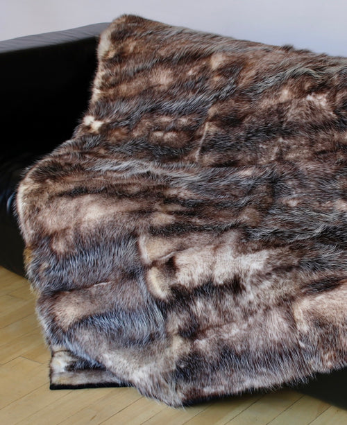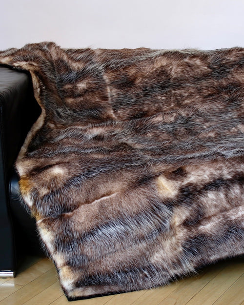 One of a kind blanket from recycled American opossum fur. Soft and plush, perfect for adding layers of warmth over a bed or a sofa.