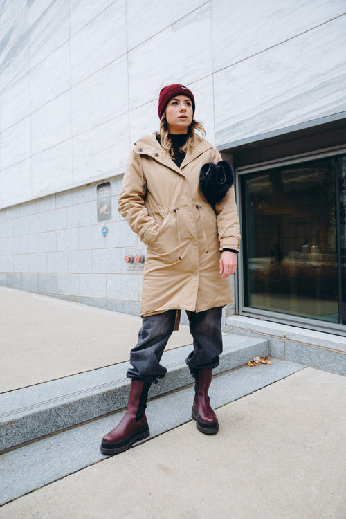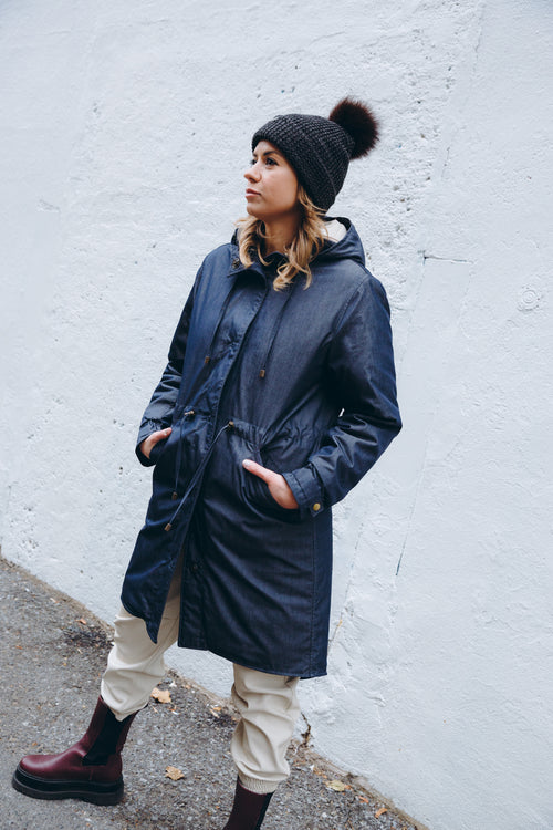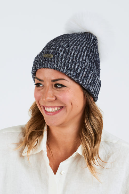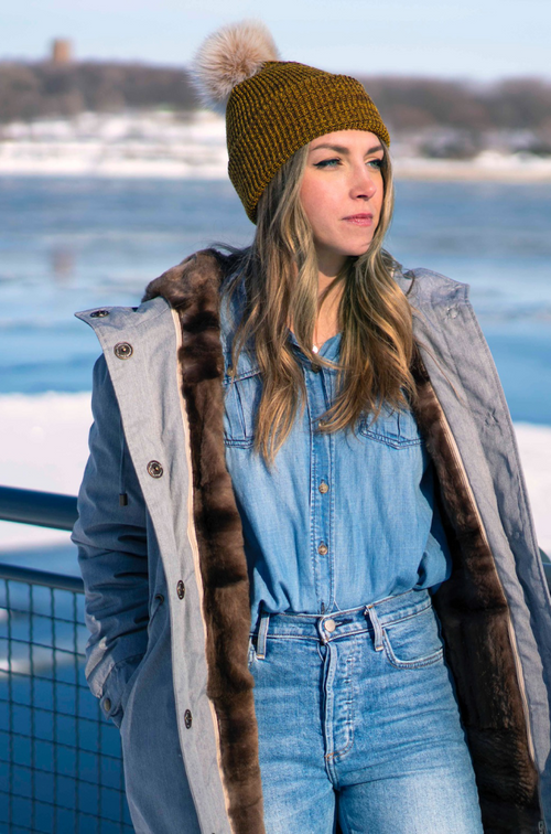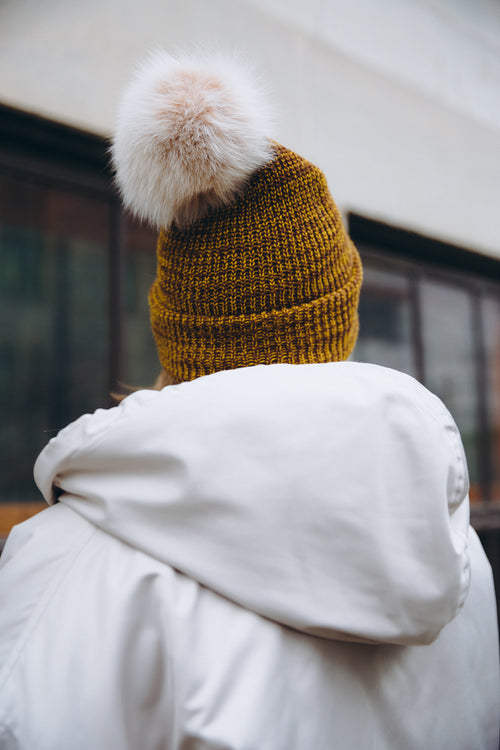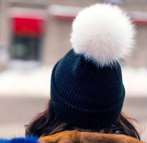 This toque is hand crafted in Montreal and made for the perfect fit featuring a detachable upcycled fox pompom, and finished with a metal FURB logo on the fold up.