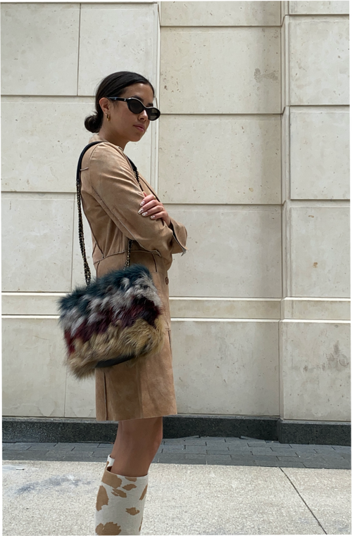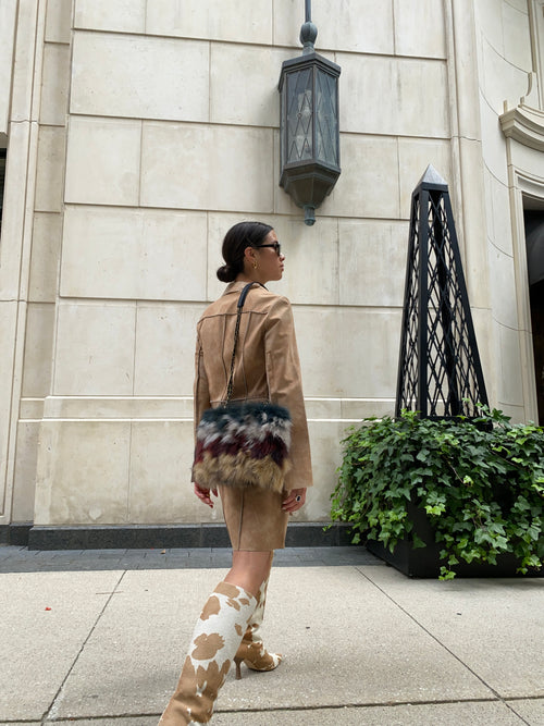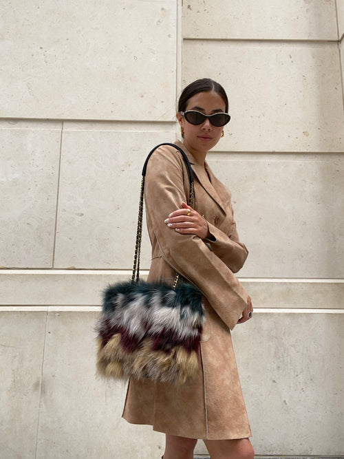 Featuring upcycled multicolour mixed fox pieces, hand polished zippers, leather craftsmanship, and leather braided metal straps, the Clarke embodies all of FURB Upcycled's’ expertise.