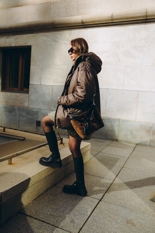 Color and style of fur may vary slightly due to variations in the upcycling process.