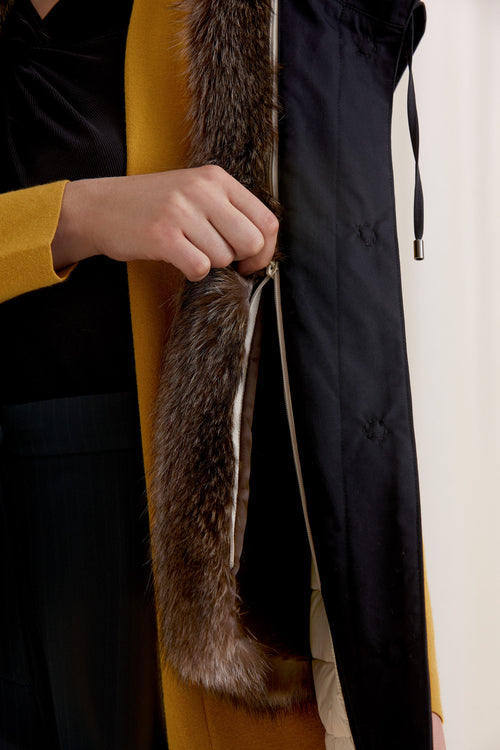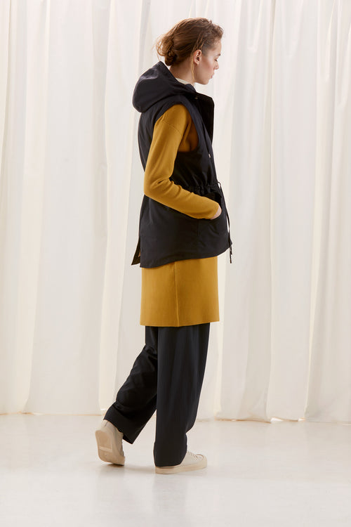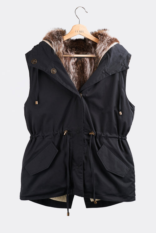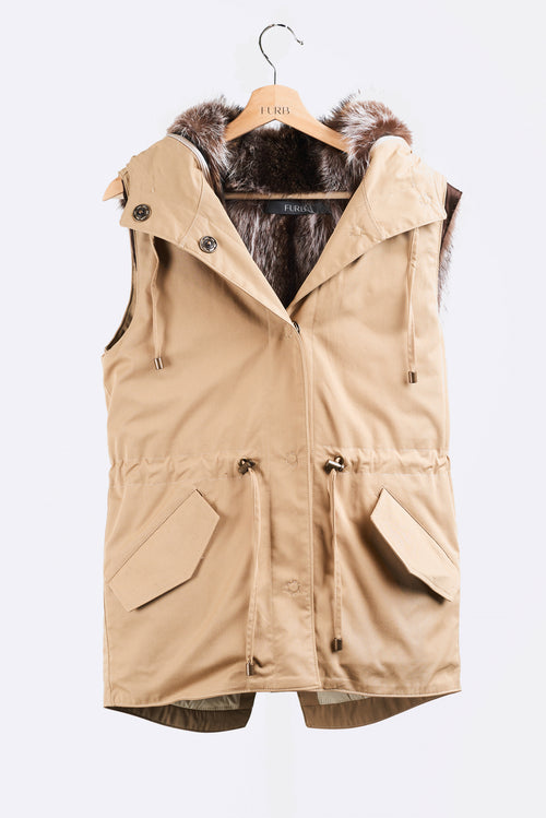 The ultimate layering piece that can be worn across all seasons, with detachable upcycled fur lining. A classic, and versatile vest that enhances your figure with an adjustable drawstring waistline.