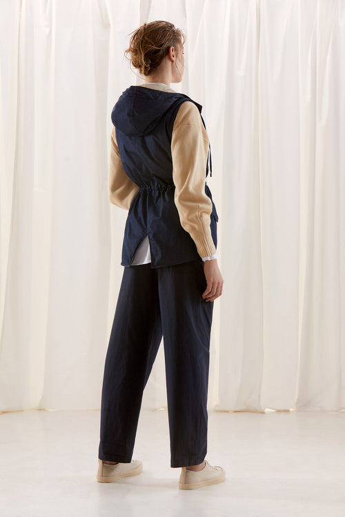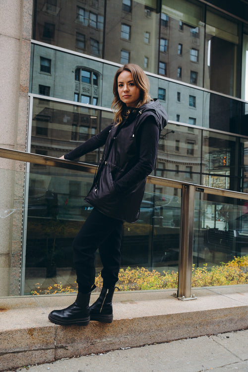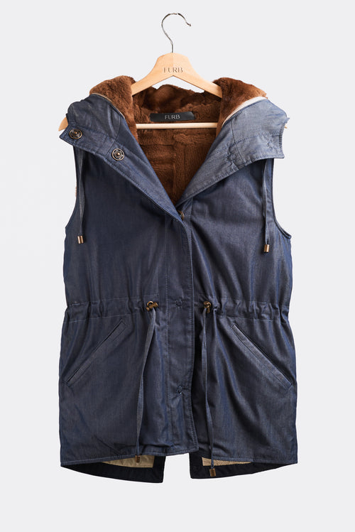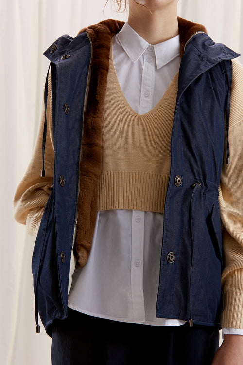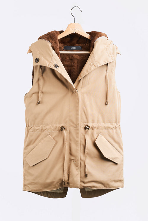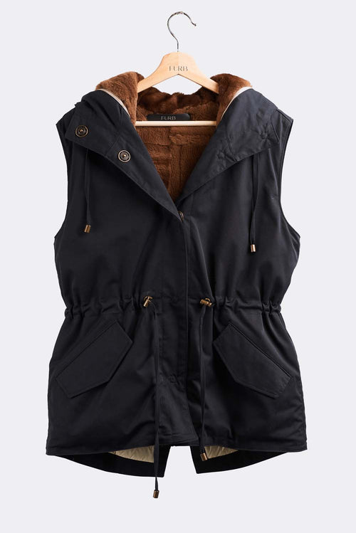 The ultimate layering piece that can be worn across all seasons, with detachable upcycled fur lining. A classic, and versatile vest that enhances your figure with an adjustable drawstring waistline.
