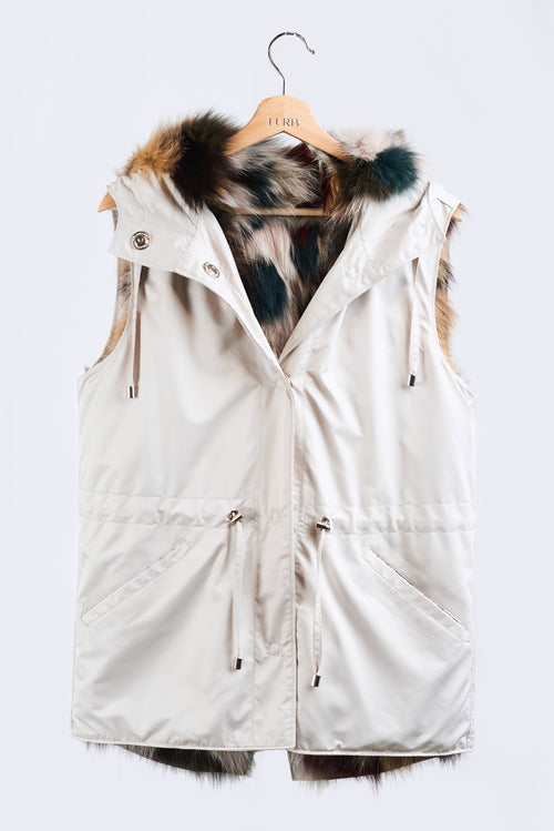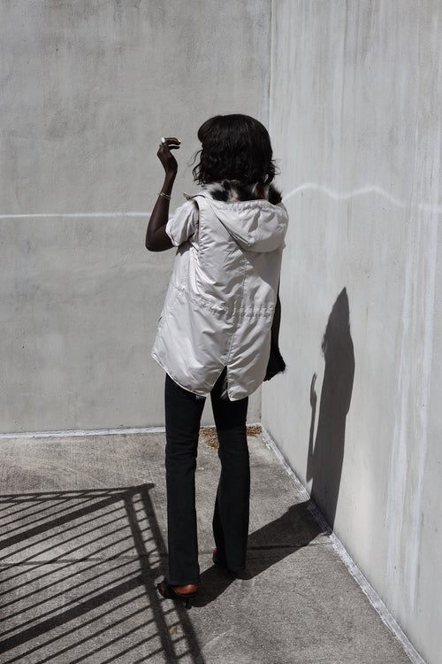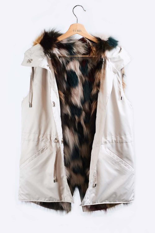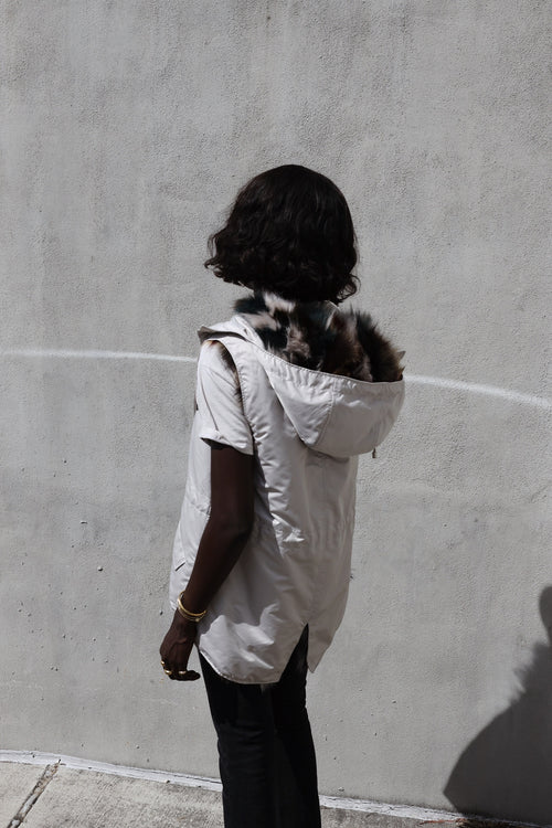 The ultimate layering piece that can be worn across all seasons, with detachable upcycled fur lining. A classic, and versatile vest that enhances your figure with an adjustable drawstring waistline.