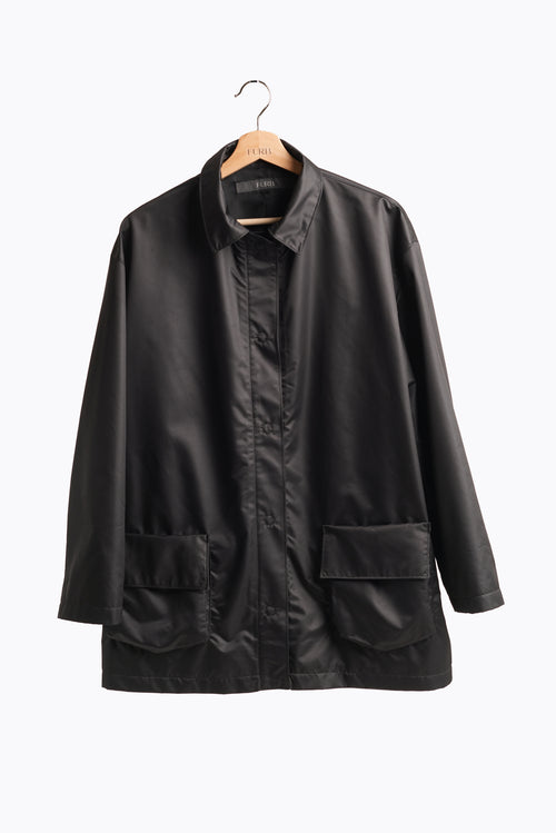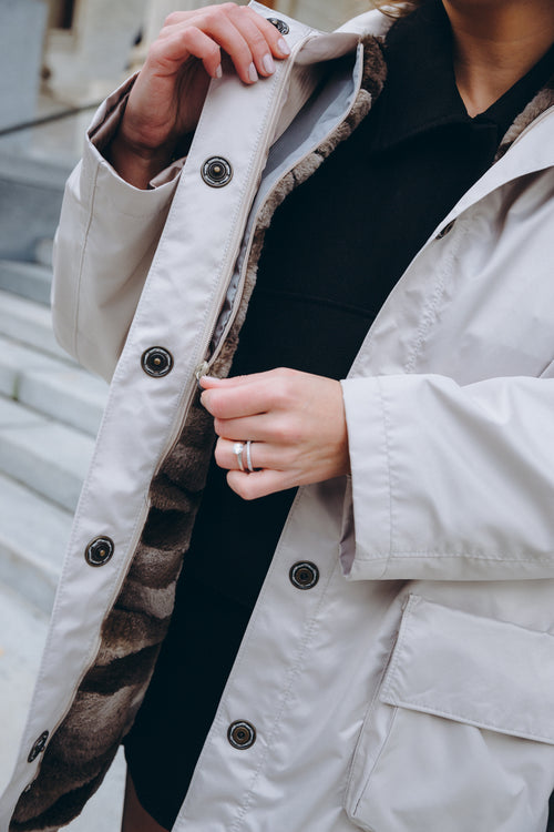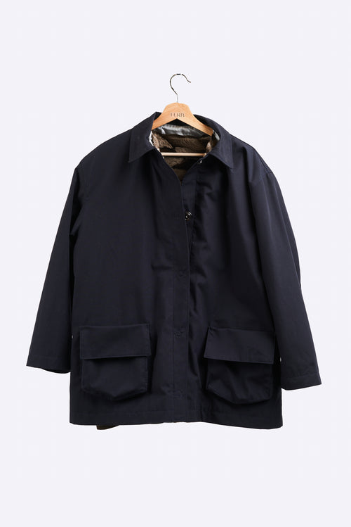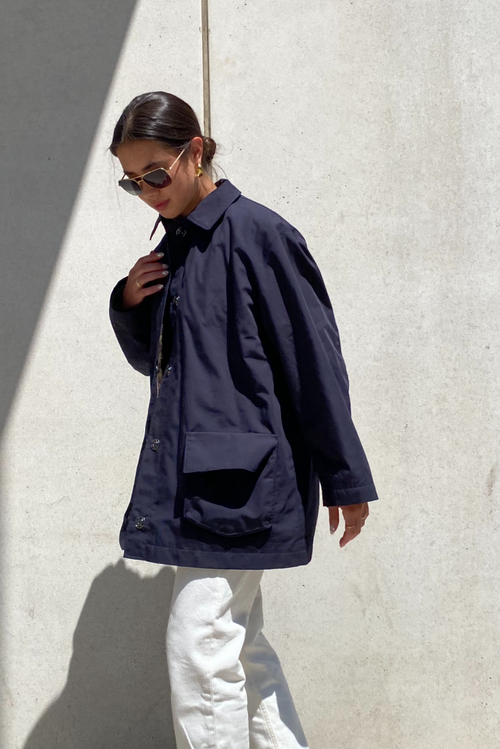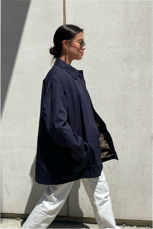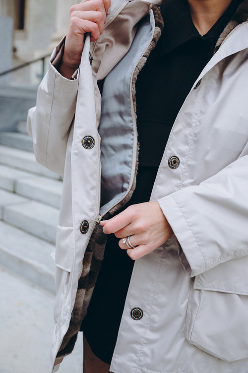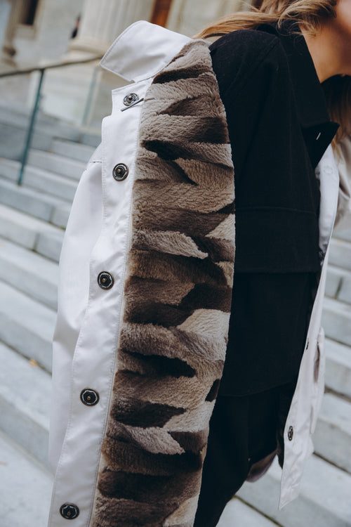 The Murray barn coat is cut for an oversized fit. The detachable upcycled fur lining makes it the perfect jacket for transitioning into the different seasons.