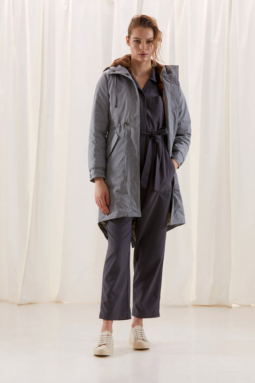Renfrew elevates the relaxed parka, giving you a modern elegance. The detachable upcycled fur lining and lightweight shell allows you to wear the coat in the winter or spring. Renfrew enhances your figure with an adjustable drawstring waistline.