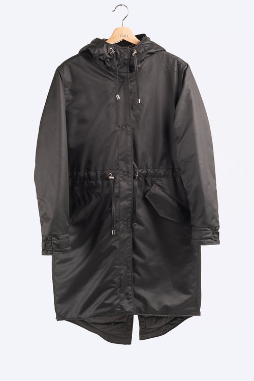 Knee length, fish tail hem offers superior protection from cold and wind