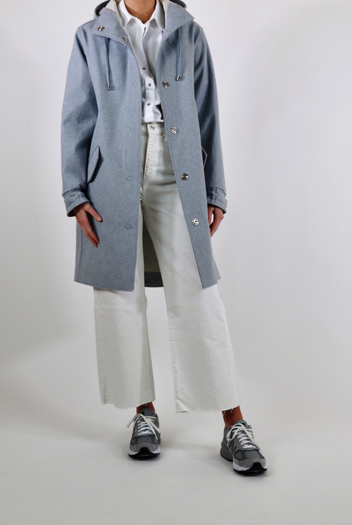 Renfrew elevates the relaxed parka, giving you a modern elegance. Luxurious, thick upcycled denim in a one of a kind light blue material. Made with 100% sustainable eco-cotton.